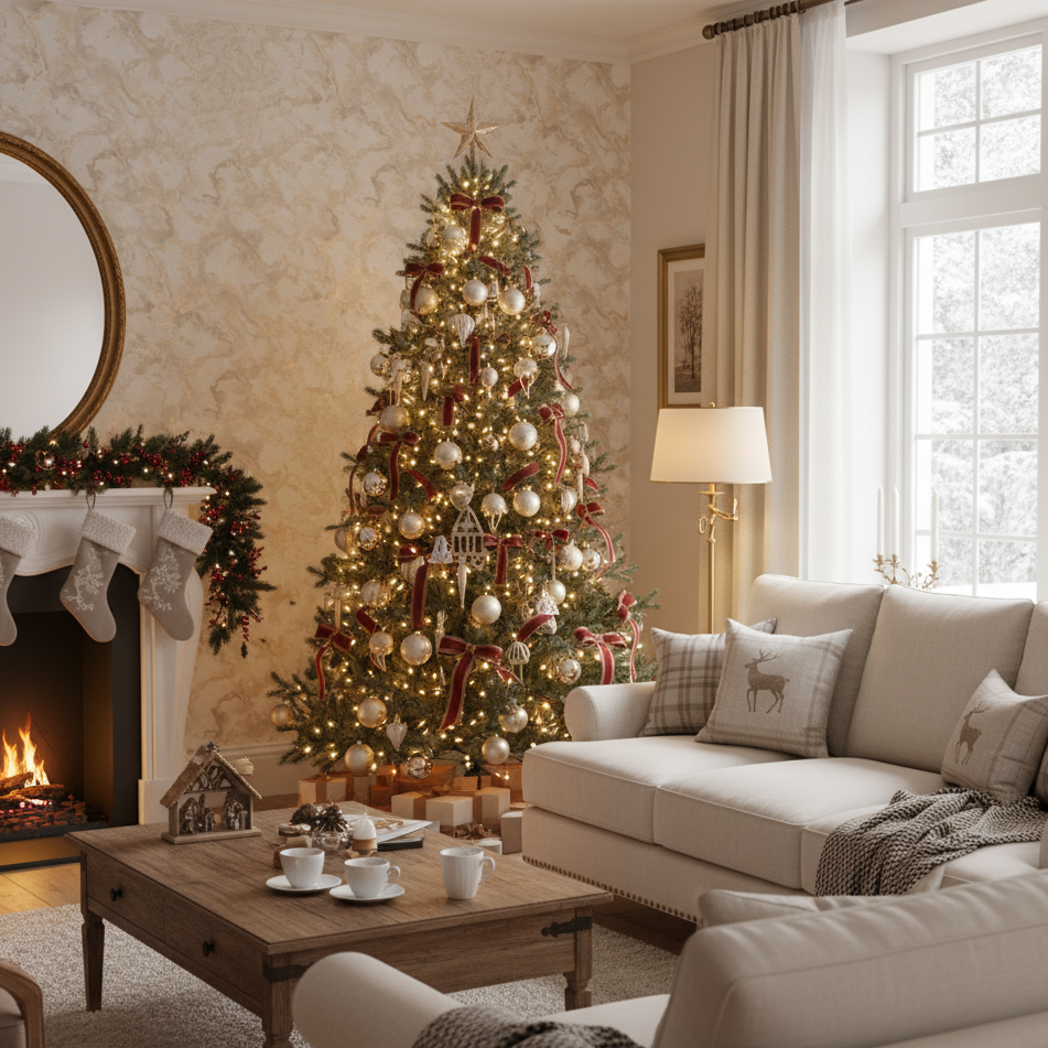 Renueva tus paredes con papeles de colgadura que combinan estilo, confort y el encanto de la Navidad.