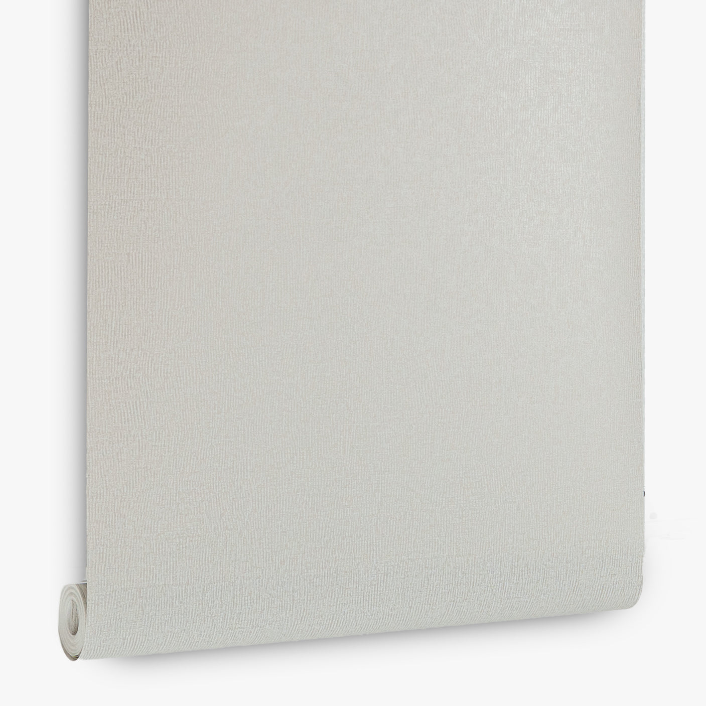 Papel de colgadura liso texturizado con micrograno tipo tejido fino en gris perla frío. Acabado mate con sutil satinado que ilumina sin reflejos; ideal para un fondo limpio y contemporáneo en sala, dormitorio u oficina.